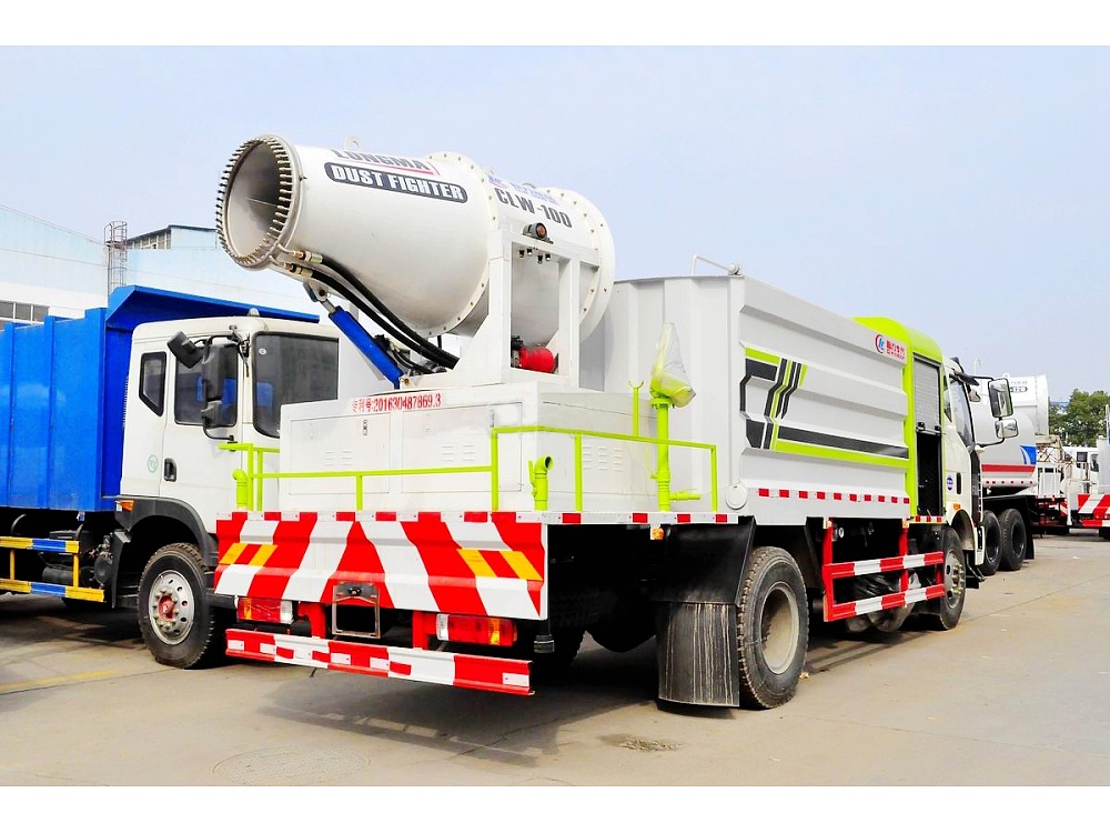 2、工作效率高、噴霧速度快;對容易引起塵埃的堆場噴水除塵時,噴出的霧粒細小、與飄起的塵埃接觸時,形成一種潮濕霧狀體,能快速將塵埃抑制降沉,霧量沉降率可達95%。