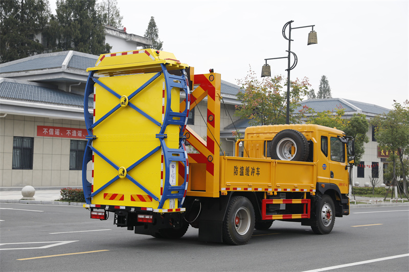 采用Q235國標邊3mm底板花紋板4mm厚,箱體后部防撞緩沖模塊包采用國際知名技術(shù)產(chǎn)品100K防撞緩 沖模塊,防撞緩沖吸能模塊主要由車載防撞緩沖墊和導向標志架組成,充當施工作業(yè)車輛后方的緩沖衛(wèi)士。 如若發(fā)生追尾事故,能夠在肇事車輛和前方施工作業(yè)區(qū)域之間構(gòu)建一個緩沖區(qū)域,通過機具結(jié)構(gòu)變形吸收撞 擊的能量,**限度地降低被保護人員及設(shè)備遭到碰撞的幾率。高性能液壓系統(tǒng),可實現(xiàn)快速舉升和落下操 作,方便設(shè)備運輸轉(zhuǎn)場,一鍵啟動功能,舉升和落下防撞裝置,當防撞裝置未完全落下到工作位置或舉升到 垂直運輸位置時,會有自動**告音提示。